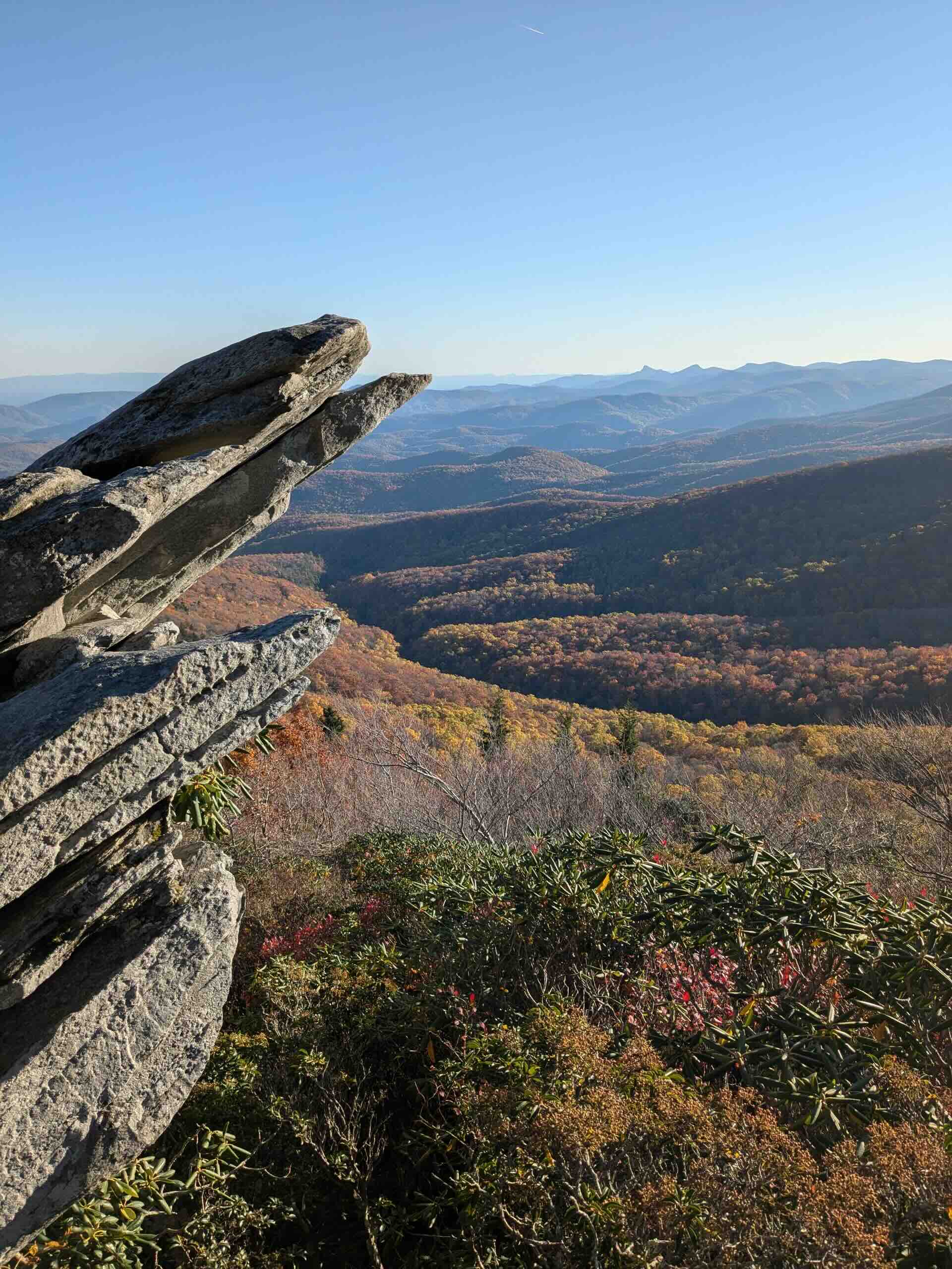 Rough Ridge is the name of a viewpoint just off of the beautiful Blue Ridge Parkway near Grandfather Mountain and the famous Linn Cove Viaduct in North Carolina. It is one of many expansive panoramic vistas of the surrounding Appalachian Mountains in the area.